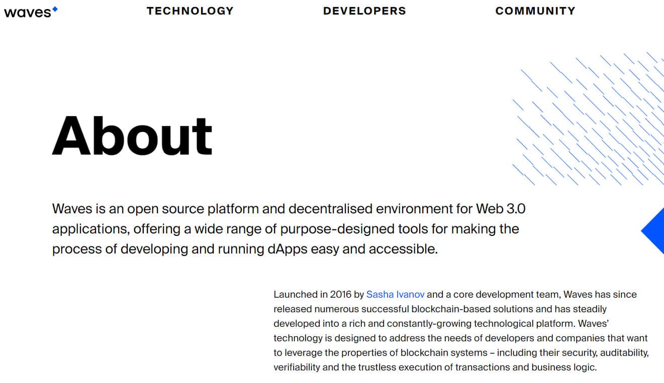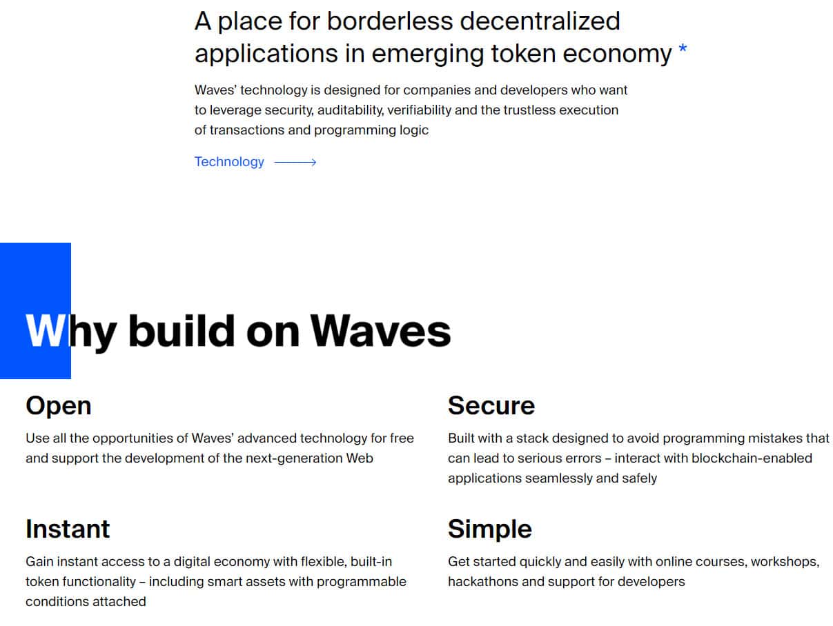 Далее на подвальном сайте проходимцев Waves Platform следует довольно сомнительное описание их подвальной конторы, с помощью которого жулики Вейвс Платформ пытаются навязать клиентуре очередную лапшу на уши с целью развода клиентуры на деньги. На изображении, расположенном ниже, вы можете увидеть данный раздел сайта.