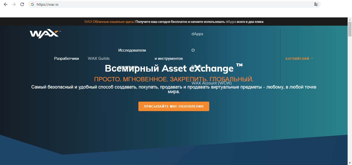 Главный интернет ресурс махинаторов WAX io сделан в духе дешевого коммерческого проекта. Всё на сайте сделано для того, что бы заставить пользователей вносить деньги и сотрудничать с компанией мошенников. Аферисты сразу пишут громкие заявления о том, что это самый безопасный и удобный способ покупать и продавать виртуальные предметы.