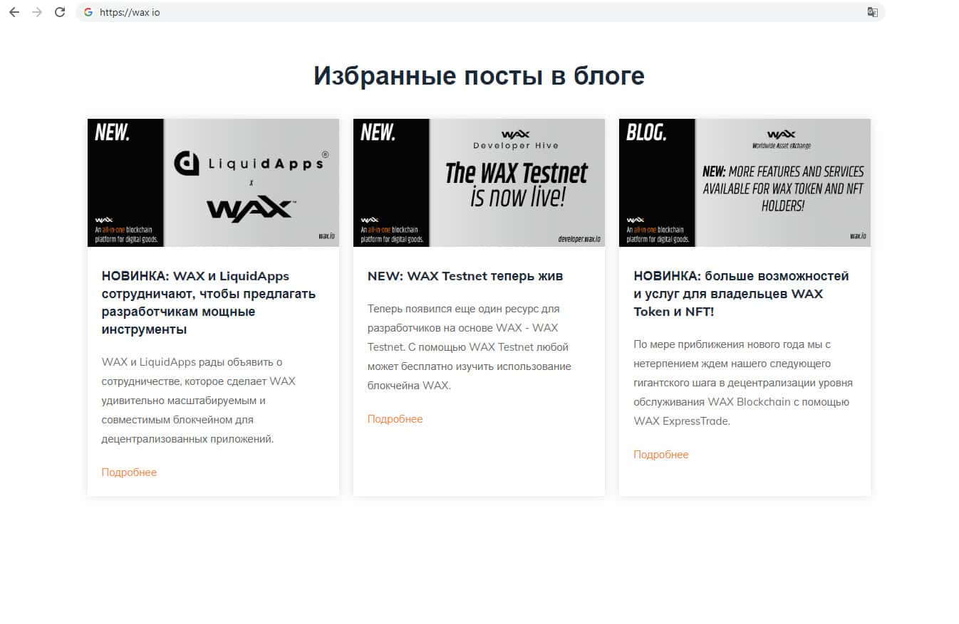 После лохотрон WAX io предлагает вниманию пользователей избранные посты. Там компания публикует посты, которые пишут сами для привлечения к себе внимания. Кидалы просто пишут статьи с интересными новостями, которые придумывают сами, и с их помощью пытаются завлечь и манипулировать своими клиентами.