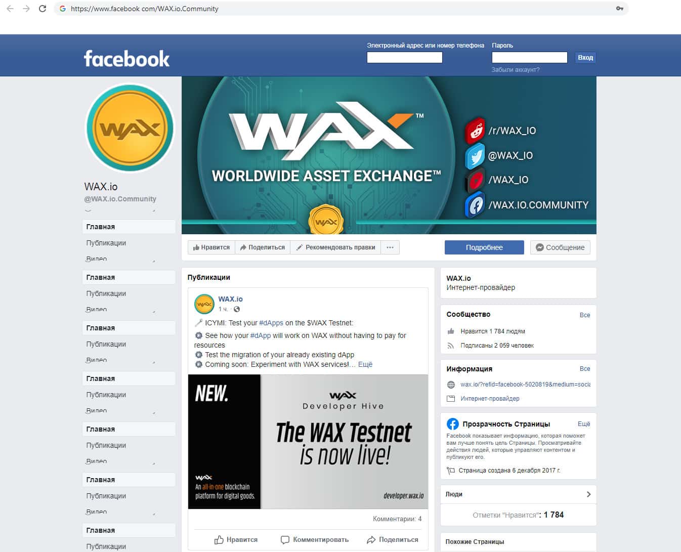 Так же лохотрон ВАКС Ио WAX io ищет жертв своей деятельности во всемирно известной социальной сети - фейсбуке. Там они набрали более двух тысяч подписчиков, и к большому сожалению каждый день число обманутых растёт. Компания делает большую ставку на детей, так как они основная целевая аудитория, из за того, что много играют.