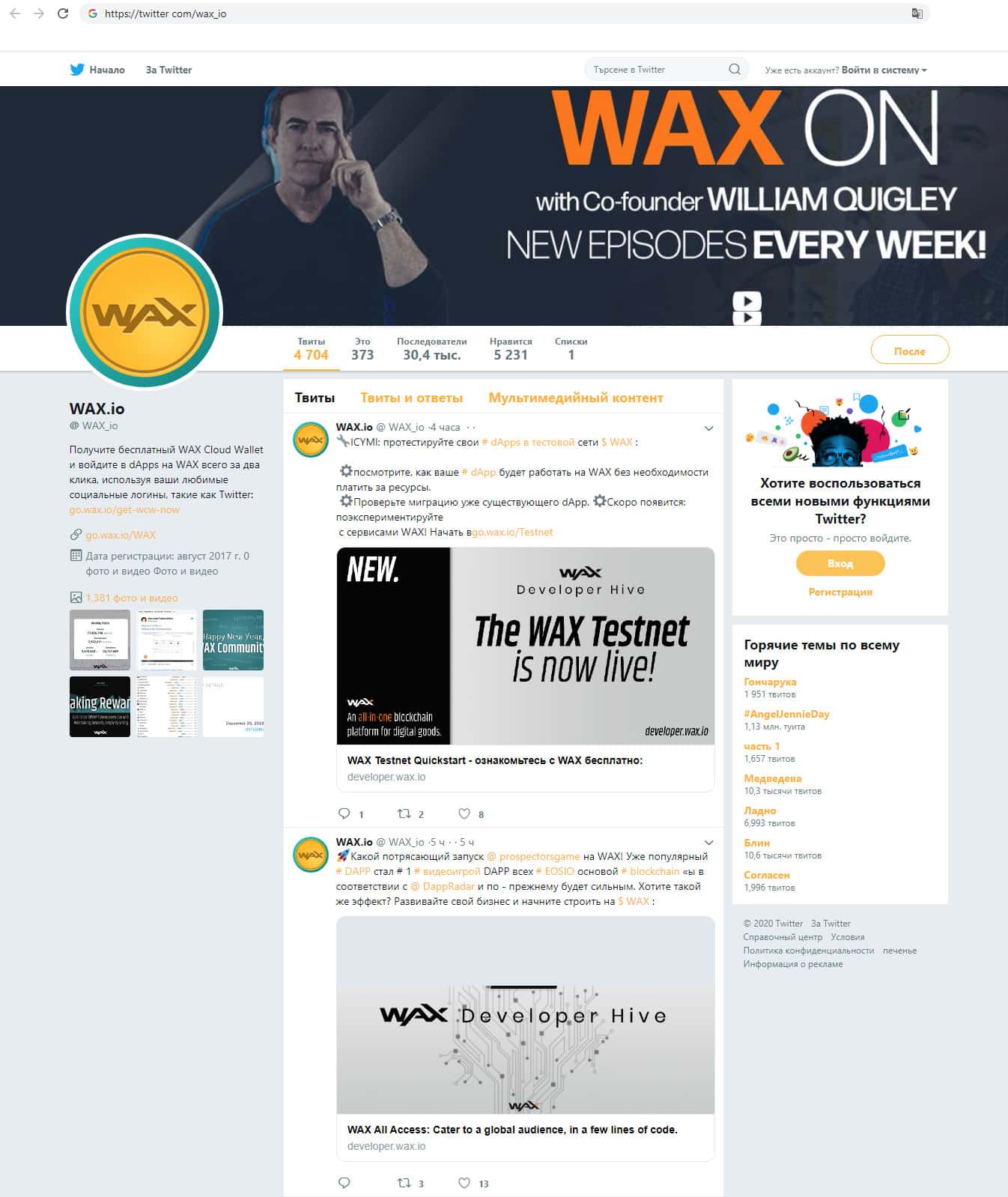 - Сотрудничество недоконторы WAX io с социальными сетями