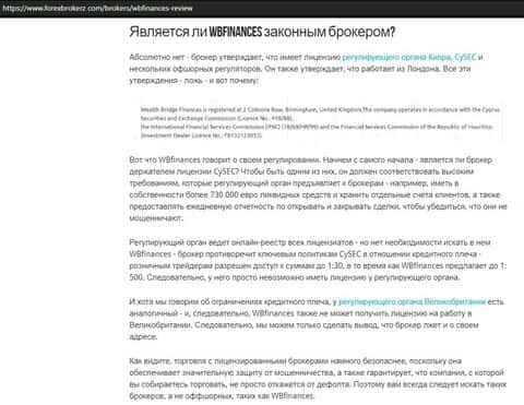 Из следующего обзорного материала становится известно, что контора WBFinances является нерегулируемым брокером, который ложно утверждает, что у него есть лицензия.