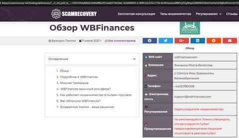 - Сведения о мошеннической конторе WBFinances