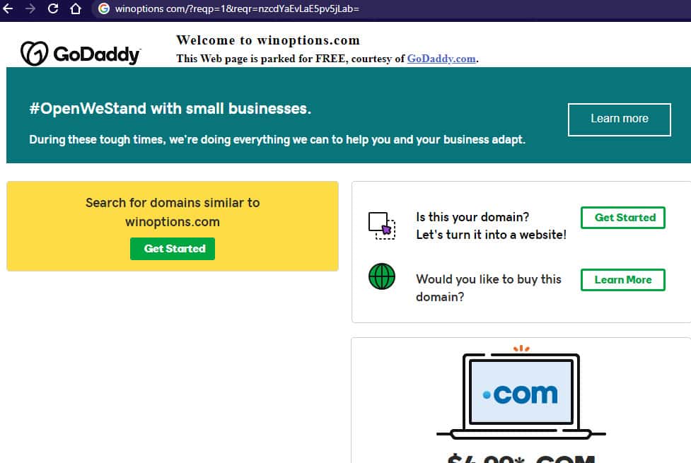 В связи с крайне не успешной мошеннической и противозаконной деятельностью мошенников Win Options на просторах сети интернет аферисты Вин Опцион приняли вполне логичное решение, а именно жулики Win Options попросту удалили свой подвальный сайт. На изображении ниже вы можете увидеть результат перехода на сайт шулеров Вин Опцион.
