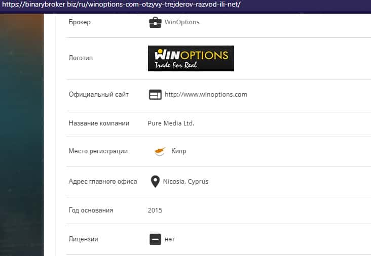 binarybroker biz - веб-сайт с информацией о лохотроне Win Options