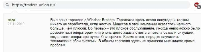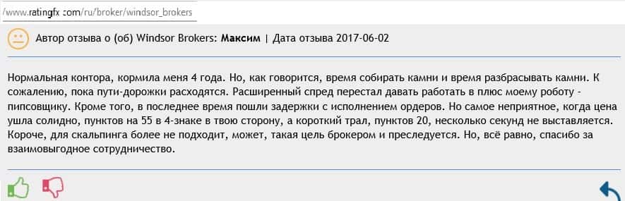 Форекс трейдер на сайте ratingfx ru негативно отзывается о компании Windsor Brokers