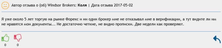 Трейдер по имени Коля на сайте ratingfx сом жалуется, что не может получить верификацию в компании Windsor Brokers. Брокер выставляет завышенные требования к подготовке документов.
