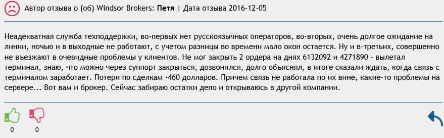 - Служба техподдержки брокера Windsor Brokers работает плохо, отзыв с сайта ratingfx сом