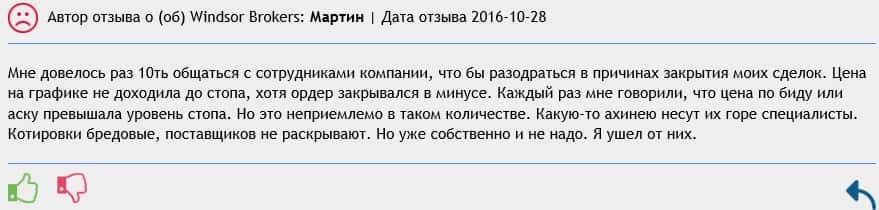 Трейдер Мартин на портале ratingfx сом жалуется на сотрудников форекс конторы Windsor Brokers, которые неправомерно, без объяснения причин закрывали его сделки, в результате чего он прекратил сотрудничество с данным брокером.