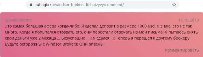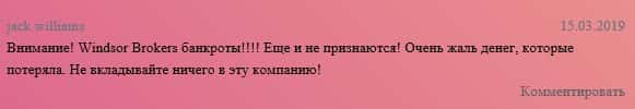 Отзыв о негативном опыте работы с Windsor Brokers с сайта ratingfx сом