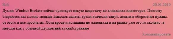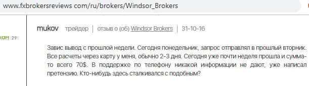 Жалоба клиента форекс брокера Виндзор брокер на задержку вывода средств