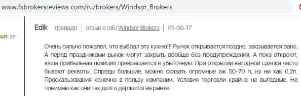 - Компания ВиндзорБрокер - это форекс кухня, об этом пишет трейдер на сайте fxbrokersreviews com