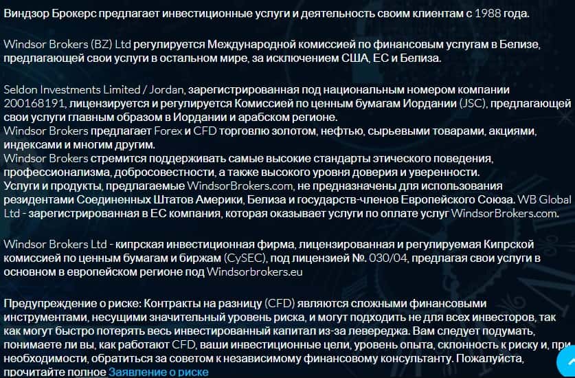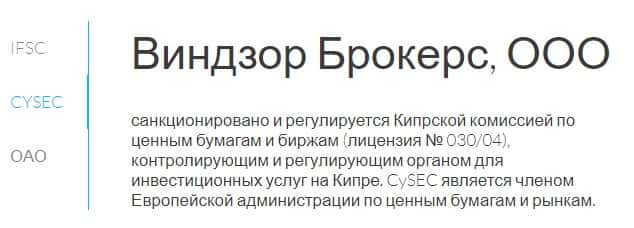 - Компания Windsor Brokers на официальном портале приводит сведения о лицензии CYSEC