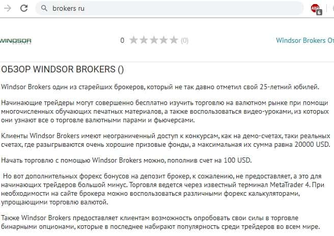 На первый взгляд Windsor Brokers добропорядочная компания - из обзора на ресурсе brokers ru