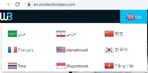 На официальном портале компании Windsor Brokers windsorbrokers com нет русскоязычной поддержки