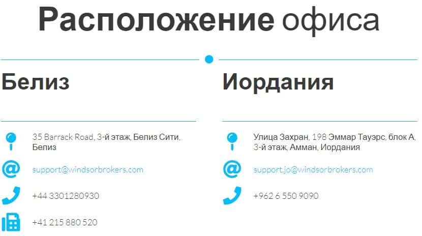 Все нажитые «непосильным трудом» денежные средства мошенники из конторы Windsor Brokers прячут в оффшорных зонах, сразу в двух. Брокер зарегистрирован в Белизе по адресу 35 Barrack Road, 3-й этаж, Белиз Сити, и Иордании, улица Захран, 198 Эммар Тауэрс, блок А, 3-й этаж, Амман. Регистрация в оффшорных зонах - первый признак мошеннической деятельности компании.