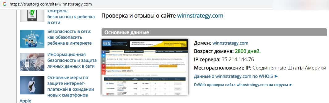 - Возраст домена фиктивного лоховода-отзовика WinnStrategy Com на интернет-портале trustorg com