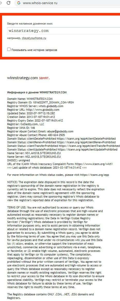 Согласно проведенному анализу по поводу домена winnstrategy com, то его собственников определить точно не удалось. Это означает, что их руководство предпочитает скрываться в тени.