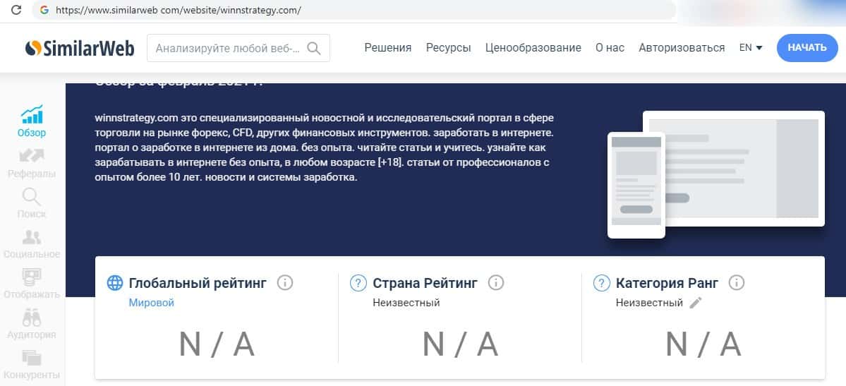 - Информация об интернет-портале зашкварного центра WinnStrategy Com на веб-сервисе similarweb com