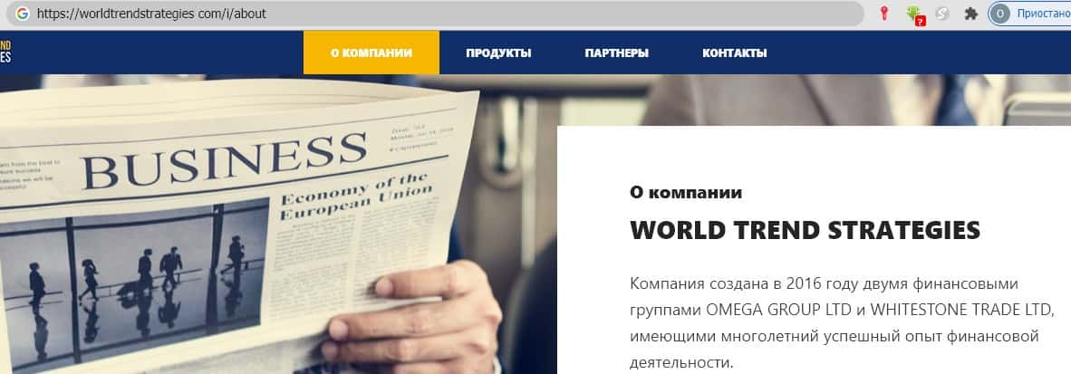 - Обзор главной страницы портала мошенников из World Trend Strategies