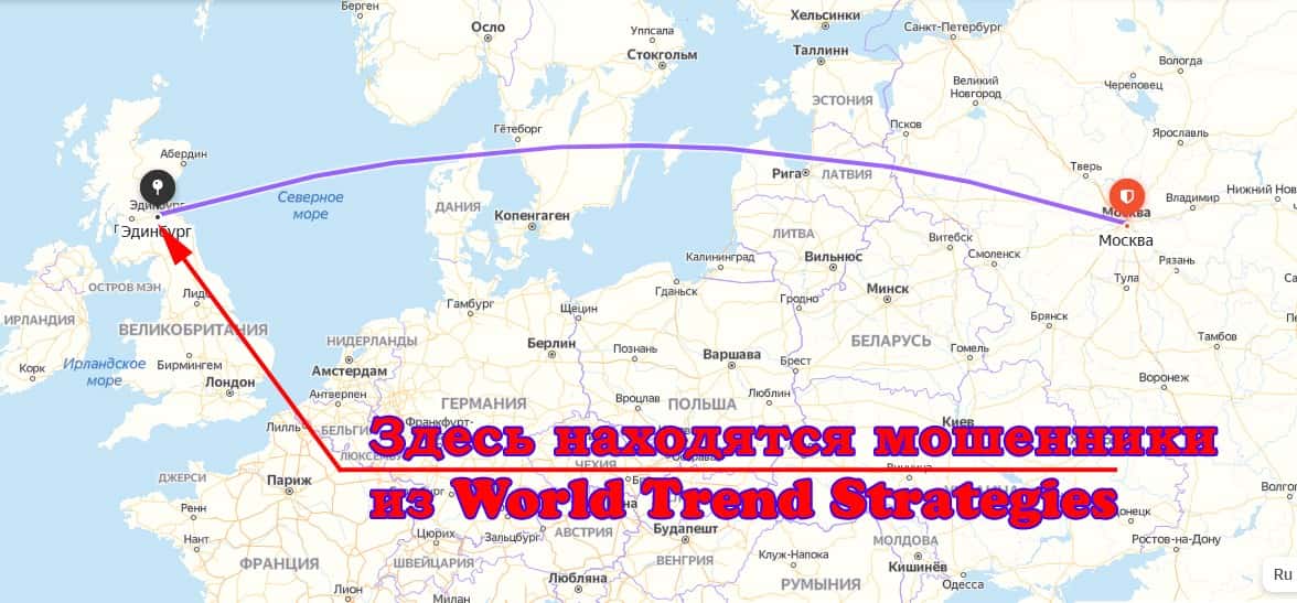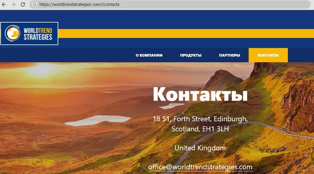 Расположение мошеннических контор в местах, подобных Эдинбургу в Шотландии, служит двум целям: делает видимость международной солидной компании и прячет контору подальше от потенциальных недовольных клиентов. Что и сделали аферисты из Ворлд Тренд Стратеджис.