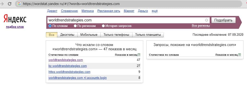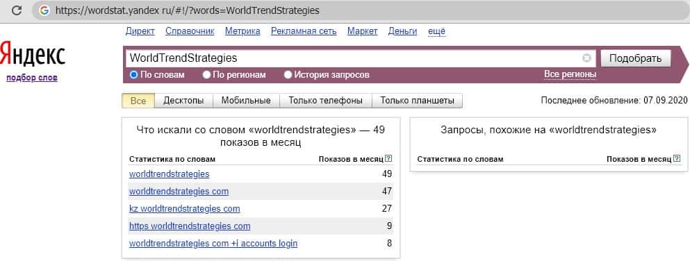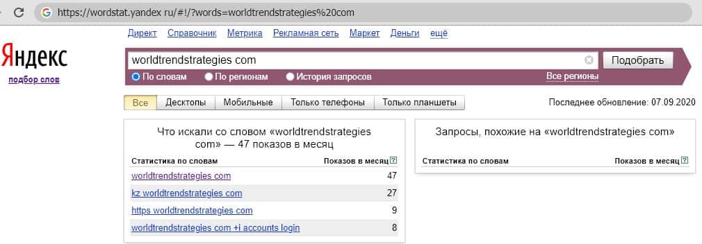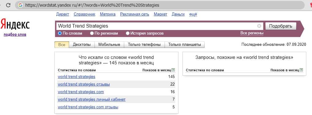 Анализ поисковых запросов о мошеннической конторе World Trend Strategies в поисковой системе Яндекс