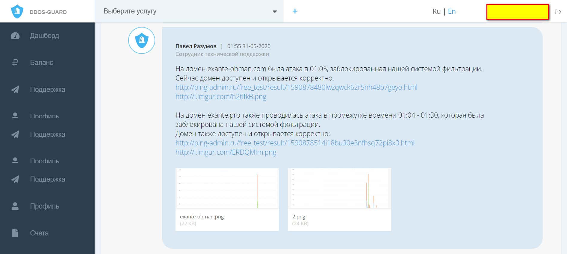 На публикациях ниже представлена информация о произошедших ддос атаках на сайты, где размещены статьи, разоблачающие мошенническую форекс-компанию ЭКЗАНТЕ, первый скрин знакомит с ответом технической поддержки онлайн-сервиса ДДоС-Гуард, который ныне обеспечивает защиту веб-площадок, включая атакованный сайт Exante Pro.