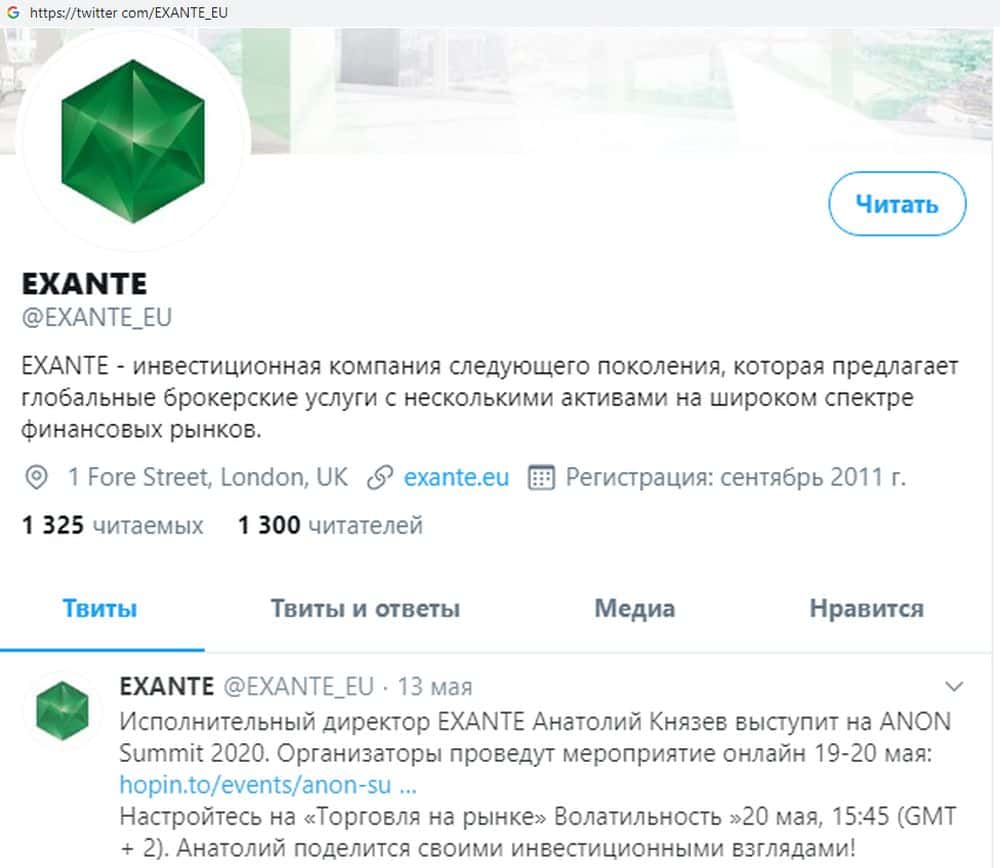 exante eu - сайт материнской скам-конторы EXANTE