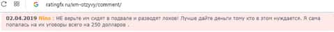 По словам опрокинутой женщины, шулера ХМ Ком используют различные схемы развода, чтобы вытащить как можно больше денег. Девушка попалась на их уговоры и вложила порядка 250 долларов. После запроса на вывод средств на связь больше никто не выходил, и средства так и остались лежать на счетах конторы XM Com.