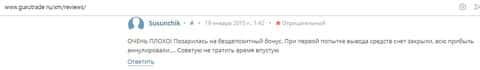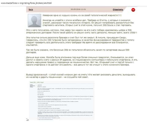 Очередной пример от одного интернет-пользователя, который на стороннем ресурсе нашел отзыв одного иностранца. В нем пострадавший рассказал, как повелся на бонус и удалось разогнать счет до 500 долларов. Естественно он захотел снять часть в размере 150 долларов, но тут его остановили и обвинили в финансировании терроризма.