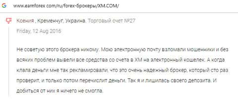 Вот еще одна ситуация произошла с девушкой, которая клюнула на рекламу в интернете и связалась с дилинговым лохотроном ХМ Ком. Аферисты без проблем узнали данные ее электронной почты и доступ к аккаунту, где лежали деньги и перевели все средства по разным электронным счетам.