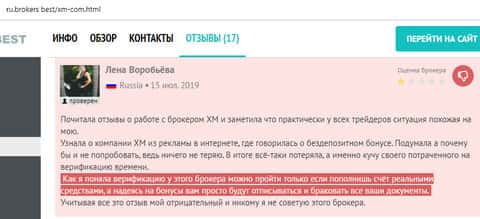 В данном случае женщина узнала о брокерской кухне XM Com из рекламы в интернете, где занимались завлекаловом с помощью бонусов. После того как она зарегистрировалась, жулики потребовали пройти верификацию счета, только для этого нужно было не только отослать документы на проверку но и пополнить счет. В итоге потеряла кучу времени.