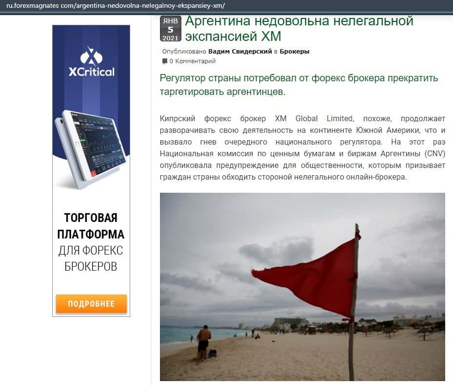 В данном материале описывается, что мошенническая форекс-контора XM Com начала нелегальную экспансию на территории Аргентины и за это регулятор пресёк их деятельность.