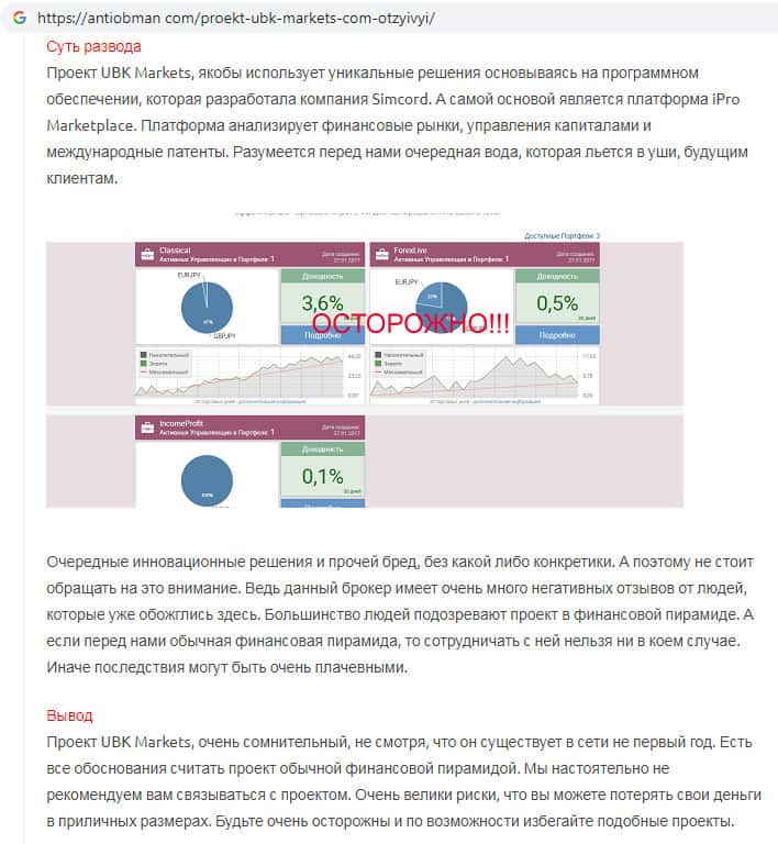 - Очередная статья-отзыв о шуллерах компании ЮБК Маркетс на сайте antiobman com