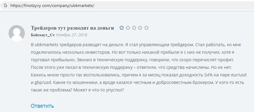 Отзывы о скам-брокере ЮБК Маркетс в сети интернет на сайте finotzyvy com