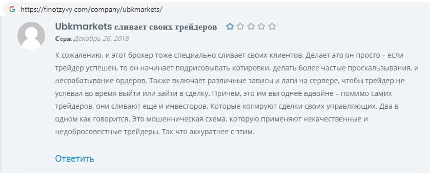 Проплаченные отзывы на официальном сайте брокера UBKMarkets
