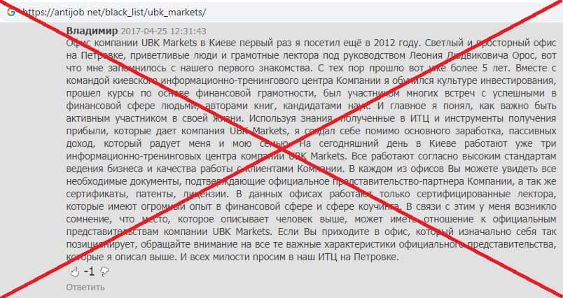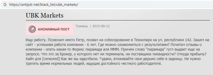 - Отзыв о потенциальном мошенничестве форекс-кухни UBKMarket на сайте antijob net