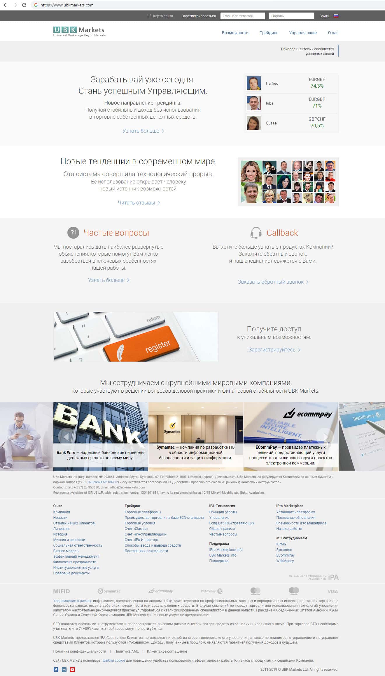 Шуллера ЮБК Маркетс, чтобы втереться в доверие клиента, в первую очередь на сайте размещают информацию о том, что они якобы сотрудничают с крупнейшими мировыми компаниями такими как: Bank Wire, Symantec, ECommPay, WebMoney, Skrill, Bank Wire, Symantec, которые в свою очередь занимаются денежными переводами и онлайн-платежами.