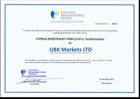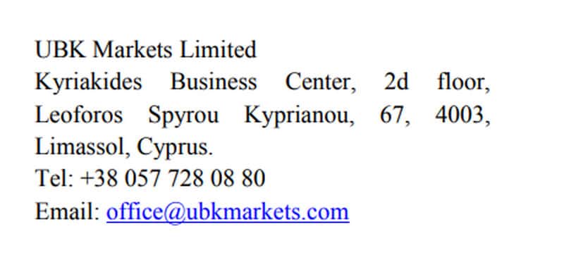 Данная мошенническая организация ЮБК Маркетс имеет лицензию с кипрской регистрацией, что не дает компании никакого права предоставлять свои услуги на територии Российской Федерации.