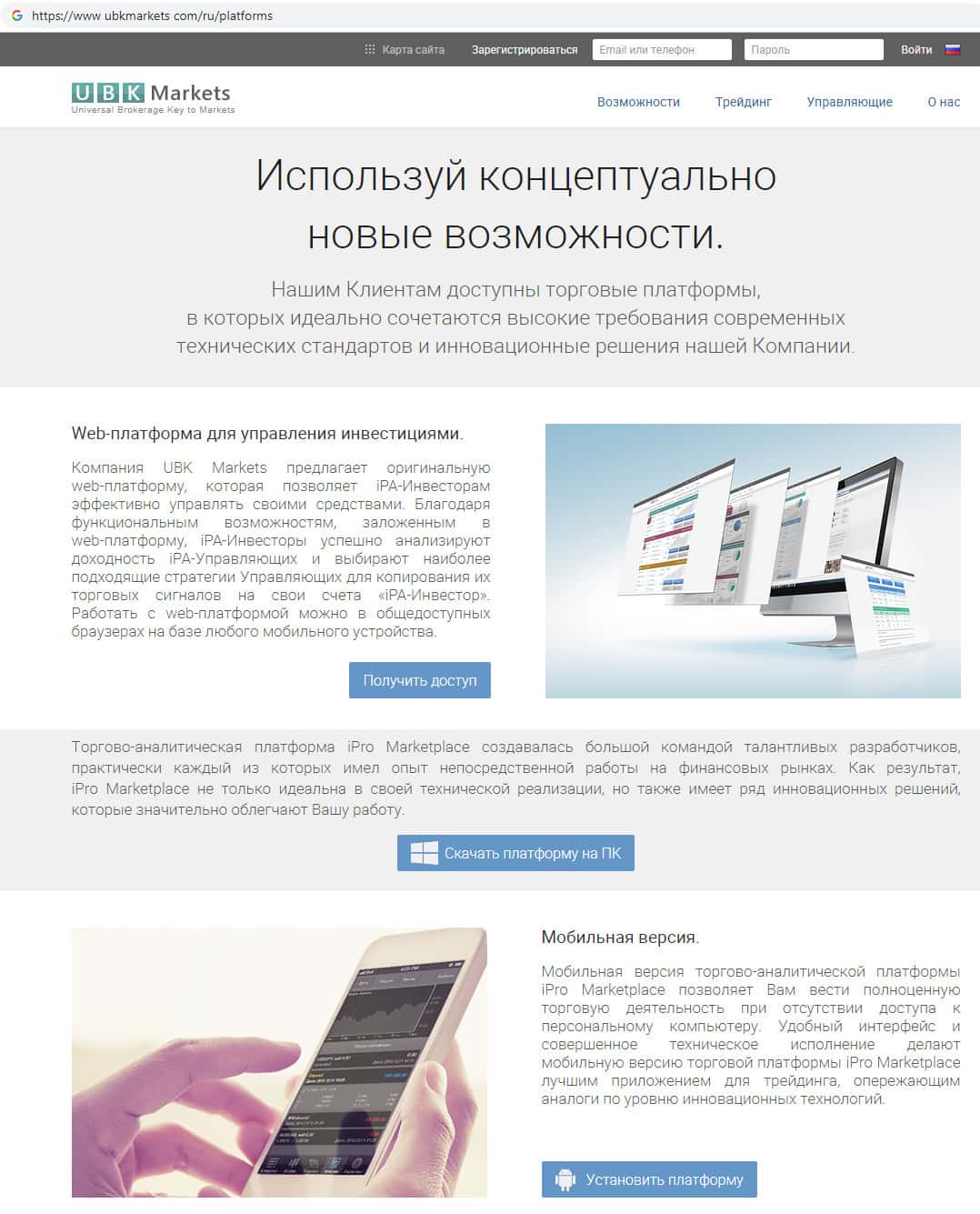 Скам-компания ЮБК Маркетс предлагает оригинальную веб-платформу, которая позволяет инвесторам эффективно управлять своими средствами. Работать с веб-платформой можно в общедоступных браузерах на базе любого мобильного устройства.