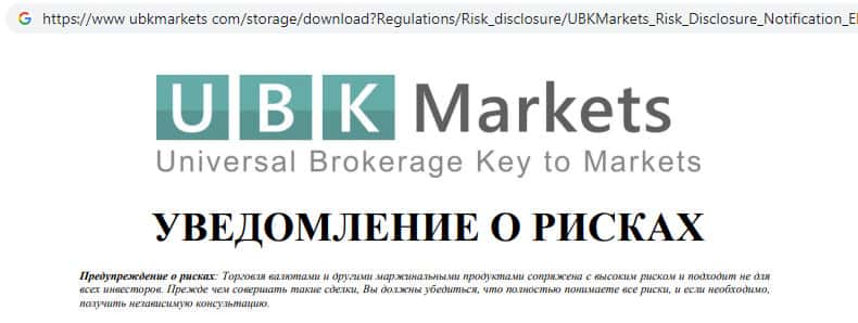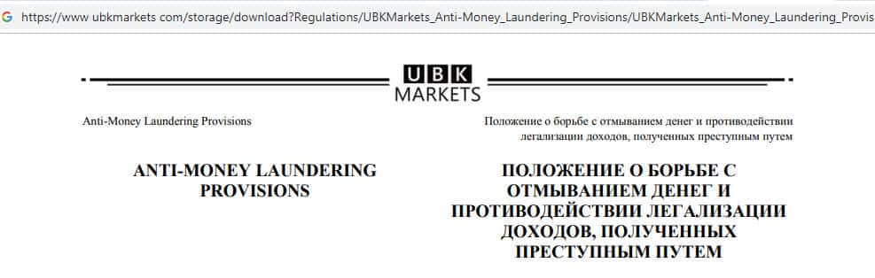 - Правовые документы предоставленные на сайте жуликов UBKMarkets
