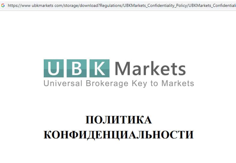 - Политика конфиденциальности скам-брокера UBKMarkets