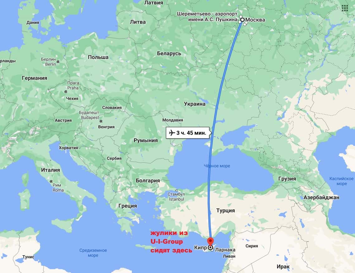 Жулики U-I-Group пишут на своем сайте, что их контора зарегистрирована на острове Кипр. Адрес, скорее всего, фейковый, но проверить это мы не можем.