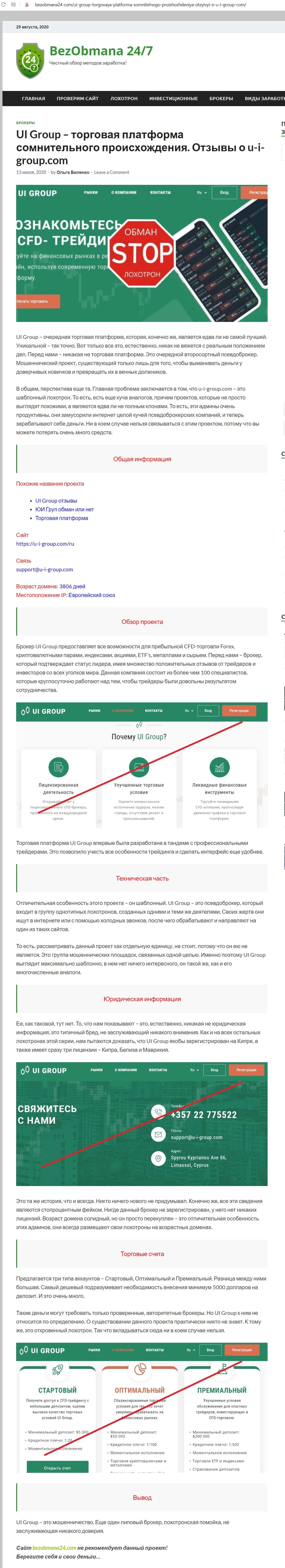 Сайт bezobmana24 com описывает компанию ЮИ Групп как очередной лоховской проект, заманивающий к себе пользователей холодными звонками, а потом сливающий их.