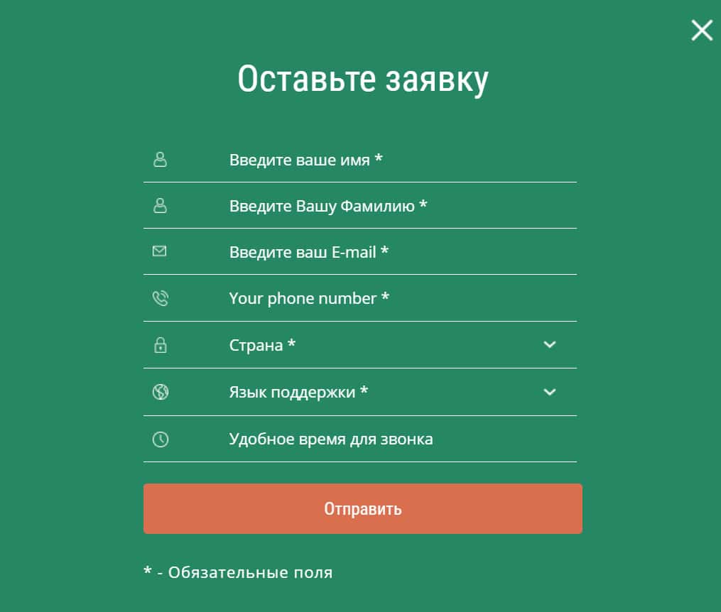 В разделе Контакты имеется кнопка Обратный звонок, нажав на которую пользователь должен заполнить форму и компания свяжется с ним позднее.