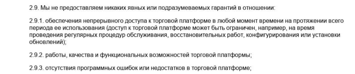В пункте 2.9 клиентского соглашения компания ЮИ Групп пишет, что не может предоставить своим пользователям непрерывный доступ к платформе по разным причинам.
