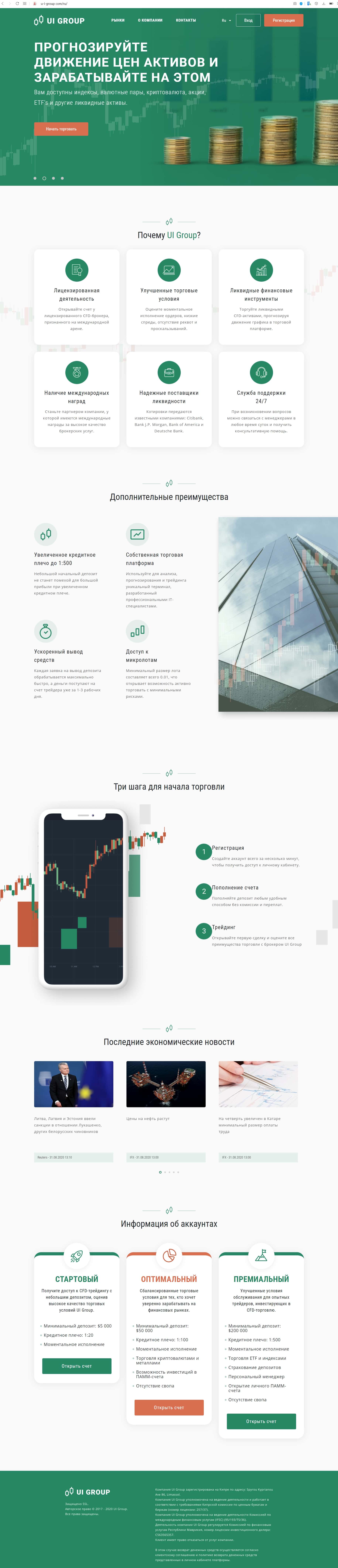 Главная страница сайта ЮИ Групп не заслуживает никакого внимания со стороны трейдеров. Она абсолютно неинформативна, сделана шаблонно и неинтересно.
