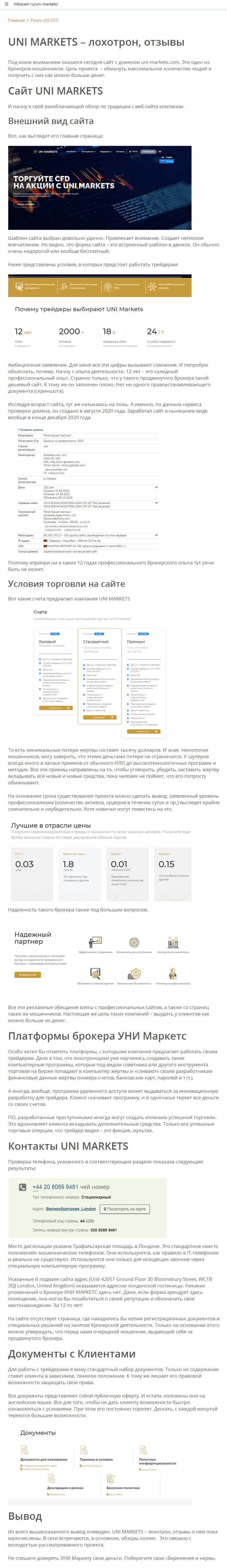 UNI Markets - обзоры мошенников на других интернет-порталах