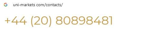 Аферисты ЮНИ Маркетс на своем дырявом сайте указали номер контактного телефона, с которого навязчиво названивают потенциальным жертвам: