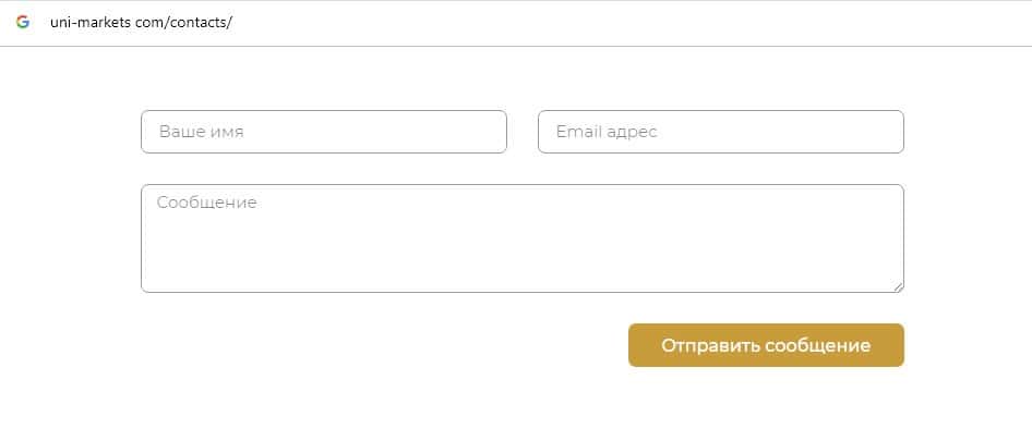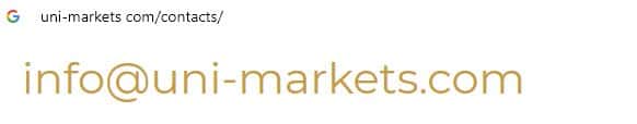 Мошенники UNI Markets на своем официальном интернет-портале указывают адрес электронной почты, а именно: